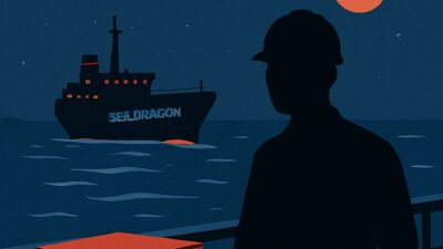 Ilustrasi kasus 2 ton sabu: siluet ABK berdiri di dek kapal Sea Dragon, menghadap laut…