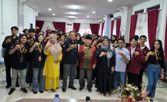 Momen kebersamaan Rektor, Sekretaris YPTP, dan Kabiro Kemahasiswaan dengan 60 mahasiswa Fisipol dalam pembukaan LDKM 2025 di Ruang Sidang Rektor.(Foto ; M).