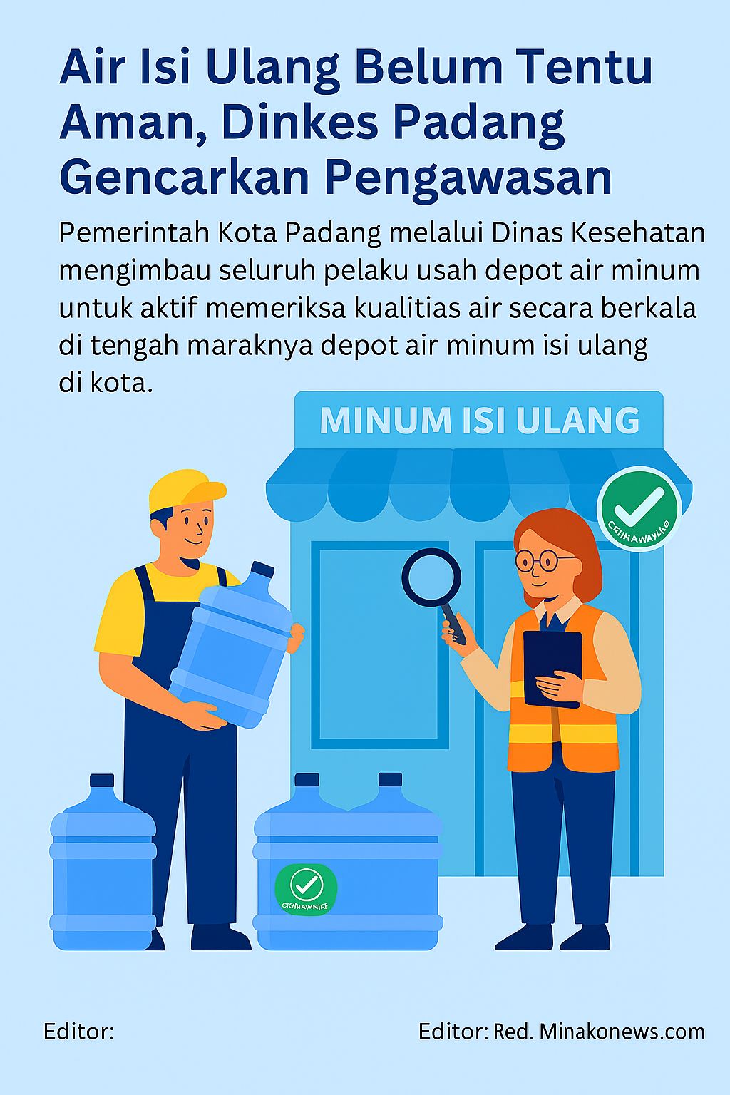 Padang (Sumbar), MINAKONEWS.COM – Pemerintah Kota Padang melalui Dinas Kesehatan mengimbau seluruh pelaku usaha depot air minum untuk aktif memeriksa kualitas air secara berkala. Imbauan ini disampaikan menyusul tingginya jumlah depot air minum isi ulang yang beroperasi di kota tersebut.