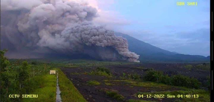 Dari data yang diperoleh awak media dari KESDM, Badan Geologi, PVMBG, Pos Pengamatan Gunung Api Semeru, serta info https://magma.esdm.go.id/v1/gunung-api/informasi-letusan, telah terjadi erupsi G. Semeru, Jawa Timur pada tanggal 04 Desember 2022 pukul 02:46 WIB dengan tinggi kolom abu teramati ± 1.500 m di atas puncak (± 5.176 m di atas permukaan laut). Kolom abu teramati berwarna kelabu dengan intensitas sedang hingga tebal condong ke arah tenggara dan selatan.
