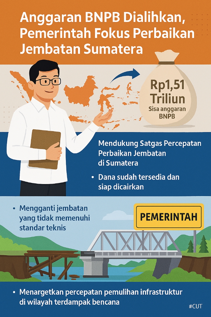 Pemerintah alihkan Rp1,51 triliun untuk percepatan perbaikan jembatan di Sumatera, dana siap cair (Infografis: WD/AI).
