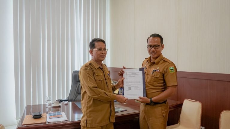 Asisten III Pemda Editiawarman terima Hasil Pemantauan dan Evaluasi dari Kementrian PAN-RB .(foto : Eli)