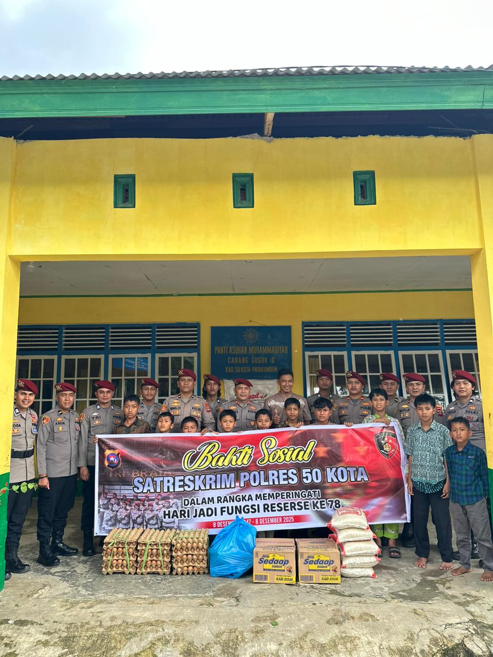 Limapuluh Kota, (Sumbar), MINAKONEWSCOM,– Dalam rangka memperingati Hari Ulang Tahun (HUT) ke-78 Korps Reserse, Satreskrim Polres 50 Kota melaksanakan kegiatan bakti sosial di Panti Asuhan Aisyiyah Muhammadiyah Kubang Tungkek, Kecamatan Guguak, Kabupaten Lima Puluh Kota Kamis (11/12) sekitar pukul 15.00 WIB.