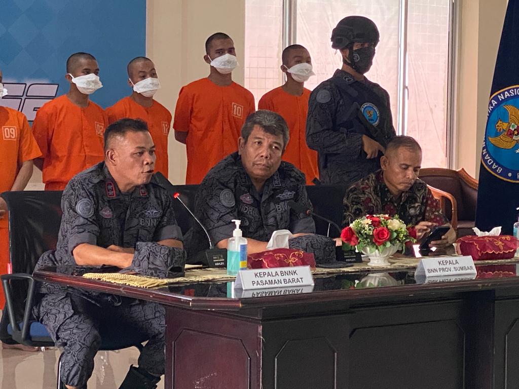 PLT Kepala BNNP Sumbar, Kombes Hindra mengatakan, barang bukti ini merupakan hasil pengungkapan tiga kasus yang dilakukan sejak 20-27 September 2022. Jumlah tersangka ada tujuh orang yang kita tangkap, kata Kombes Hindra kepada awak media, selasa(4/10) di Aula BNNP Sumbar.