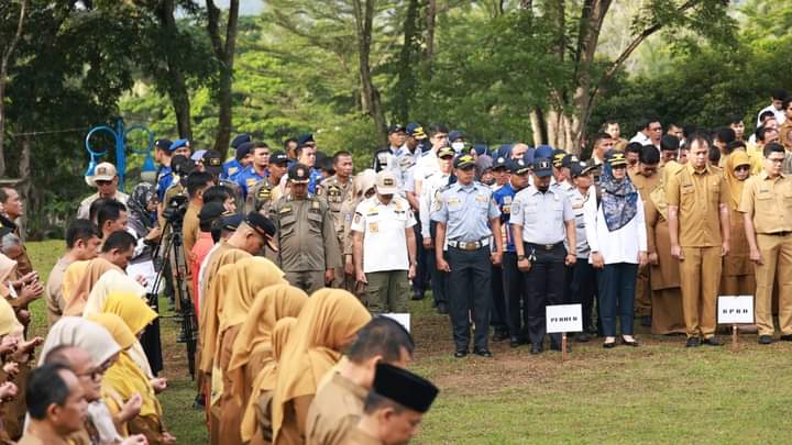 Pelaksanaan apel gabungan ASN pagi ini, merupakan hal yang sangat strategis kita lakukan, dalam rangka melakukan konsolidasi bersama menyusun kekuatan kita. Dengan bertatap muka secara langsung, bersama seluruh pegawai dalam suasana apel pagi ini juga untuk mendekatkan silaturahmi, serta kami dapat menyampaikan informasi secara langsung kepada bapak ibu semua,” kata Bupati.