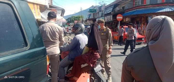 Tim gabungan yang terdiri dari Satuan Polisi Pamong Praja dan Pemadam Kebakaran (Satpol PP Damkar), TNI, Polri dan BPBD Kesbangpol ini, merazia warga yang tidak menjalankan protokol kesehatan (prokes) terutama yang tidak menggunakan masker.