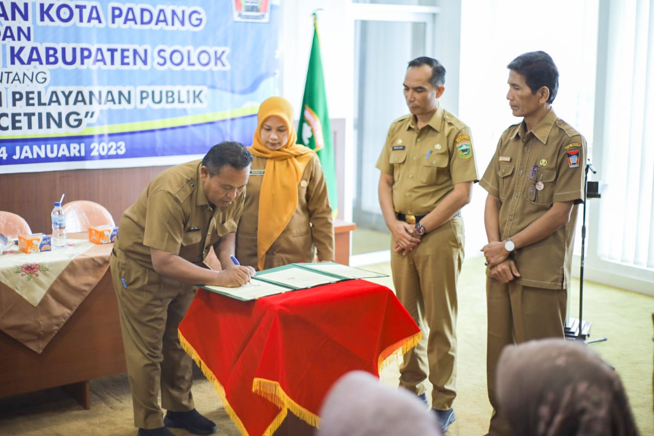 Dinas Kesehatan Pemkab Solok dan Pemko Padang tandatangani perjanjian kerjasama Selasa (Foto : Eli).