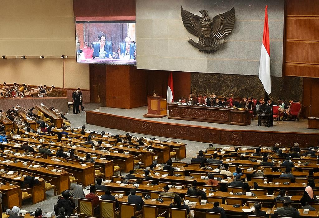Suasana sidang DPR RI di aula utama. Di tengah sorotan publik, lembaga legislatif ini dinilai paling rendah tingkat kepercayaannya menurut survei Indikator Politik Indonesia (Potret Digital: AI).