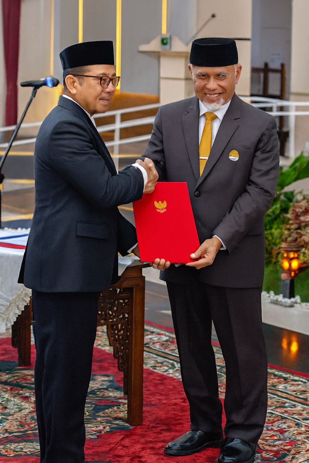 Dr. Zefnihan menerima SK pelantikan sebagai Kepala Bappeda Sumbar dari Gubernur Mahyeldi.(Potret Digital: Bappeda Sijunjung/AI).