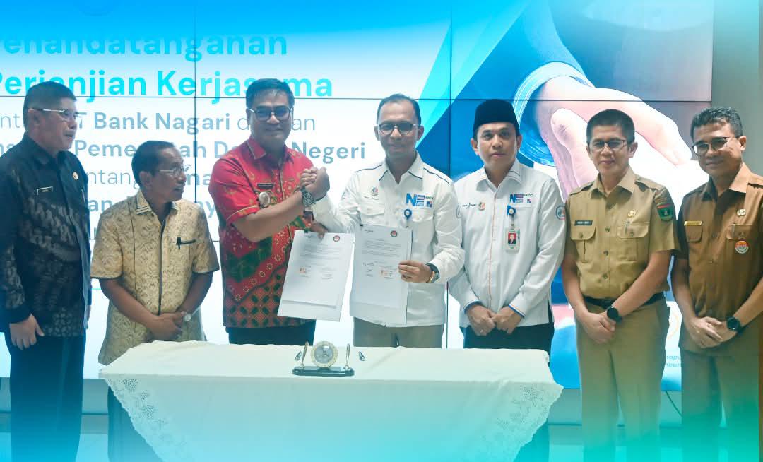 Bank Nagari dan IPDN Kampus Sumatera Barat menandatangani perjanjian kerja sama pemanfaatan produk dan layanan perbankan sebagai upaya mendukung literasi keuangan dan memperkuat ekosistem keuangan daerah (Foto Dok. Bank Nagari).