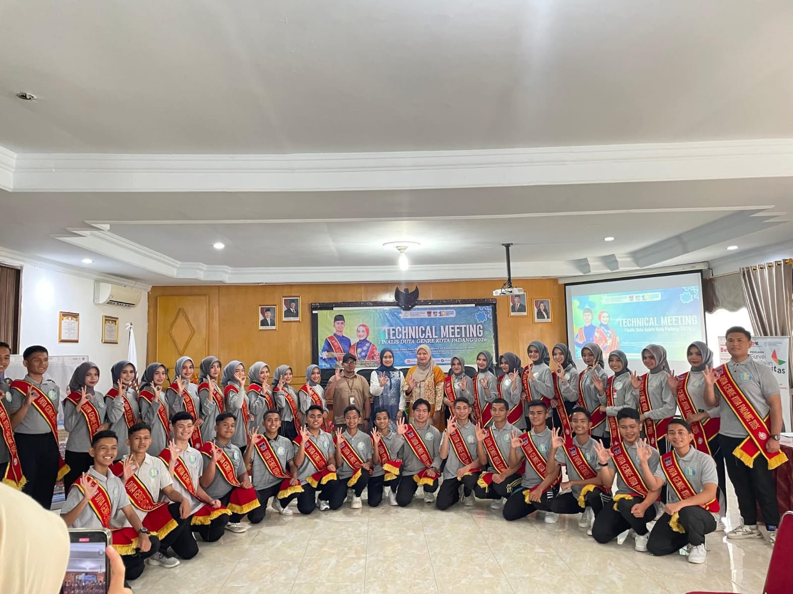 Finalis Duta Genre Kota Padang 2026 berfoto bersama usai mengikuti pembekalan kesehatan reproduksi dalam rangkaian Technical Meeting II di Gedung Latbang BKKBN Sumbar.(Foto Dok. Diskominfo).