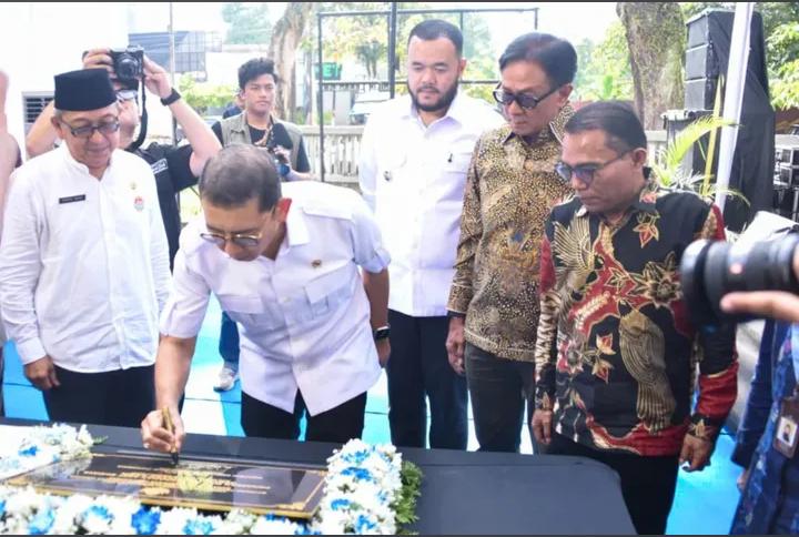 Wali Kota Padang menandatangani prasasti peresmian Gedung Abdullah Kamil sebagai pusat kebudayaan di Sumbar (Foto Dok. Humas).