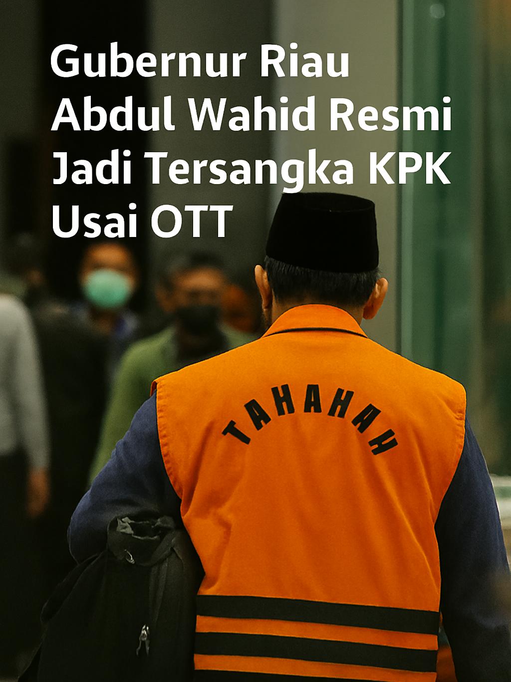 Jakarta (DKI). MINAKONEWS.COM — Komisi Pemberantasan Korupsi (KPK) menetapkan Gubernur Riau Abdul Wahid sebagai tersangka kasus dugaan pemerasan proyek infrastruktur di lingkungan Pemerintah Provinsi Riau tahun anggaran 2025. Penetapan dilakukan pada Rabu, 5 November 2025, setelah OTT yang berlangsung sejak Senin malam.