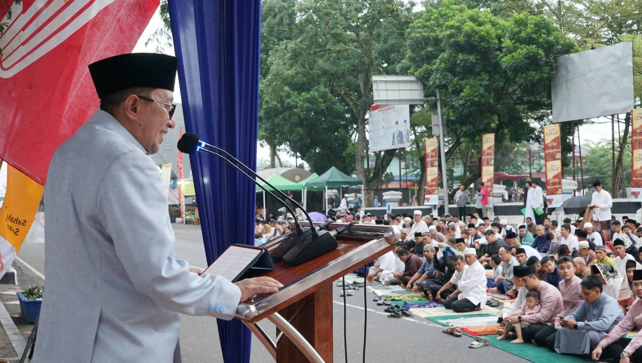 Dalam khutbahnya, khatib mengajak seluruh jamaah untuk menjadi pribadi yang muttaqin setelah menjalani ibadah Ramadan. Ia menegaskan bahwa Idulfitri bukan sekadar perayaan kemenangan, tetapi juga momentum untuk kembali kepada kesucian hati, memperkuat nilai-nilai kemanusiaan, serta selalu istiqamah dalam berbuat kebaikan.