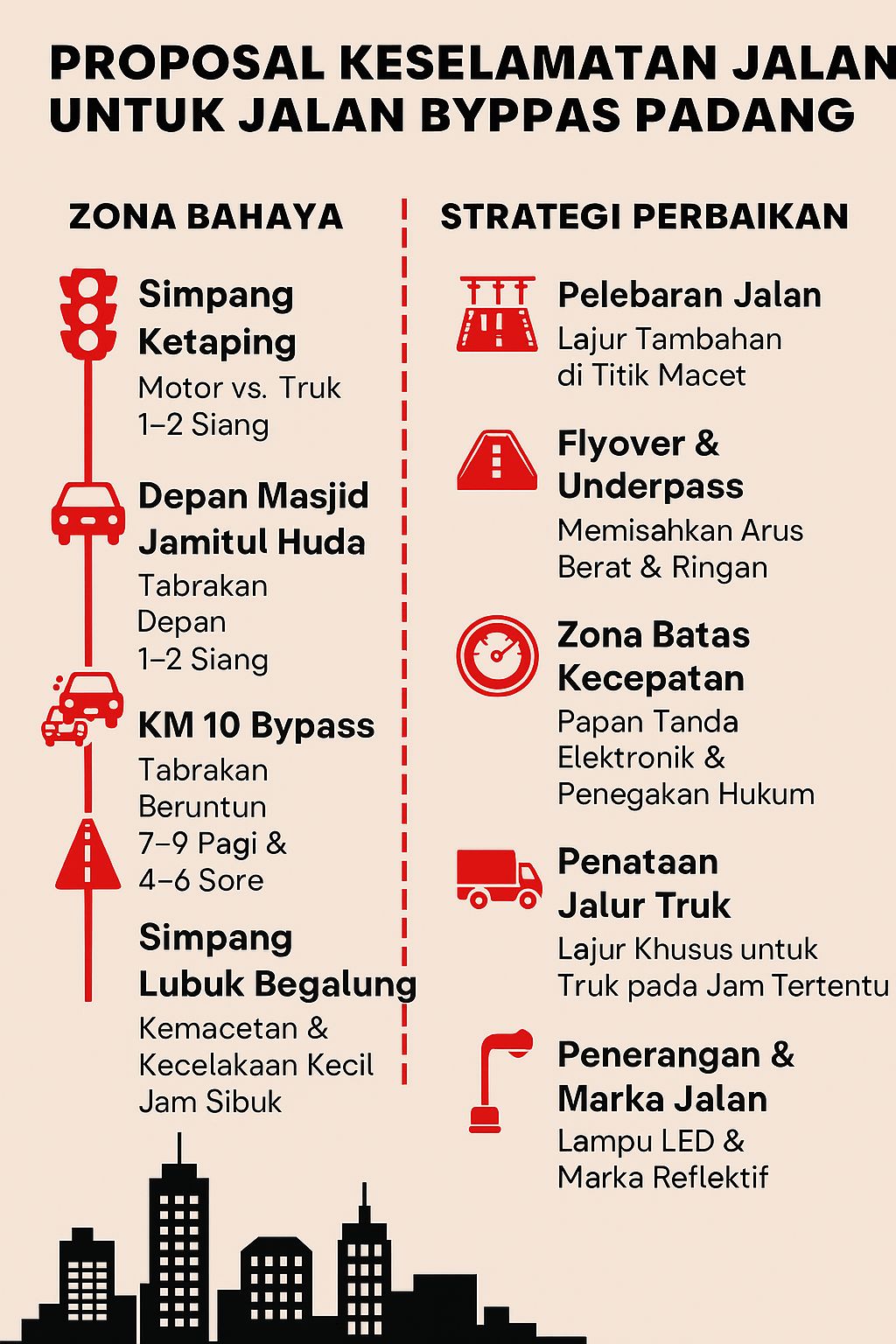 Infografis keselamatan yang menyertai laporan ini menggambarkan secara visual zona-zona bahaya dan strategi perbaikan yang diusulkan, sebagai bentuk edukasi dan kampanye keselamatan bagi masyarakat.