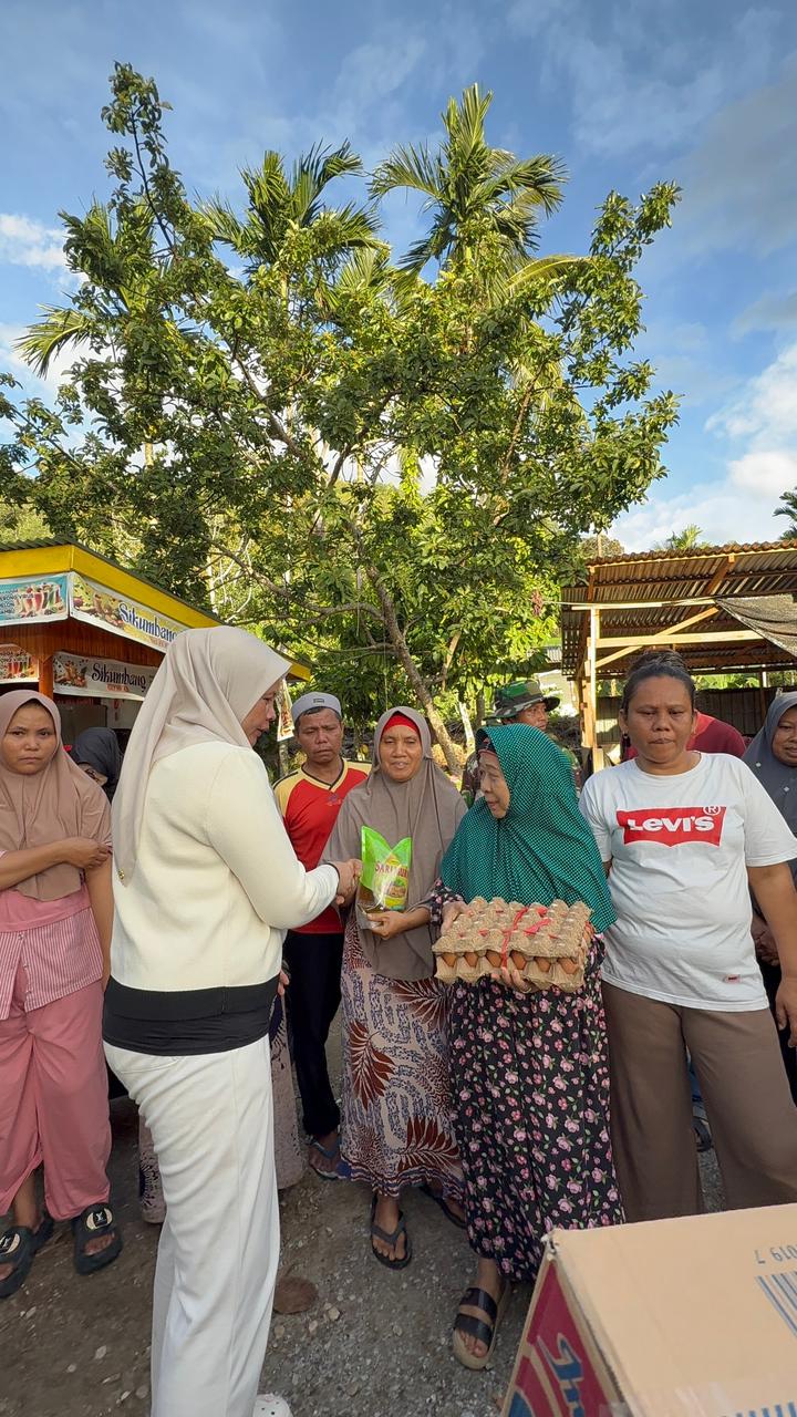 Ketua TP.PKK Nia Jon Firman Pandu Salurkan Bantuan Bagi Warga Terdampak Bencana di Kecamatan Junjung Sirih.(Foto : Eli).