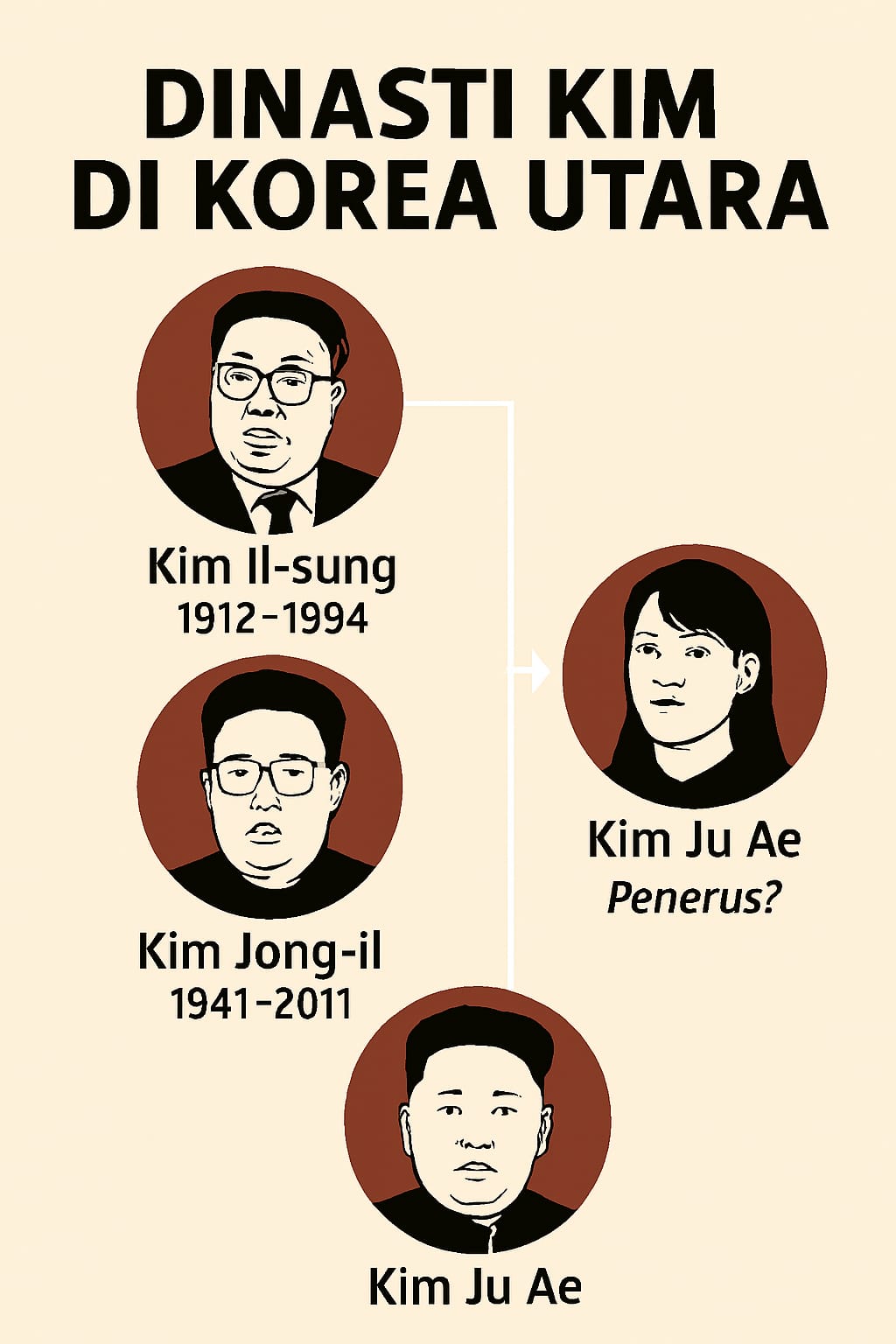Pyongyang (MINAKONEWS). Putri Pemimpin Korea Utara Kim Jong Un, Kim Ju Ae, untuk pertama kalinya muncul dalam kunjungan publik ke Istana Matahari Kumsusan pada 1 Januari 2026. Kehadirannya bersama kedua orang tuanya dalam prosesi penghormatan kepada Kim Il-sung dan Kim Jong-il memicu spekulasi kuat, bahwa ia tengah dipersiapkan sebagai penerus kekuasaan dinasti Kim.