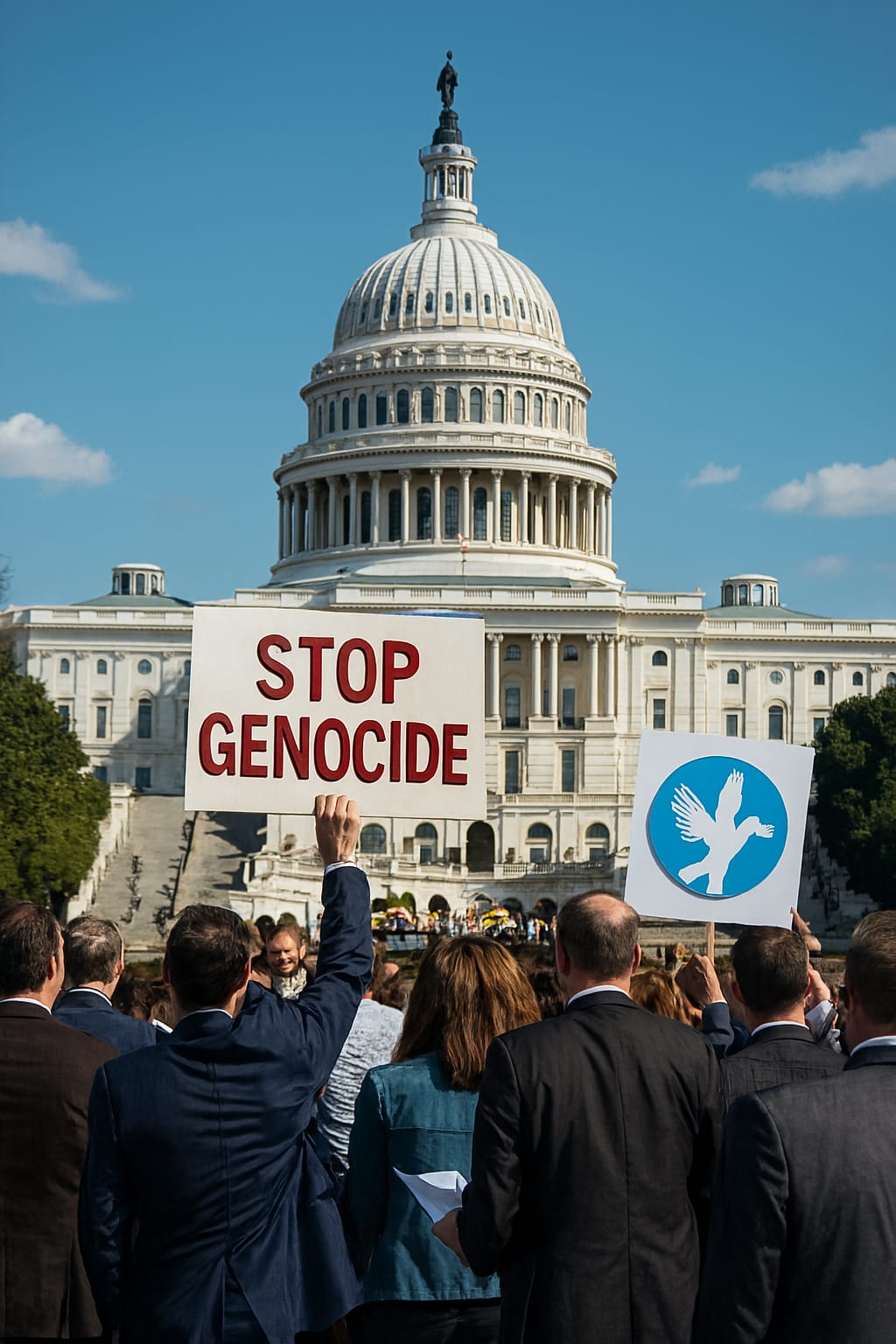Aksi damai di depan Capitol, suara “Stop Genocide” menggema di jantung politik Amerika (Potret Digital: WD/AI).