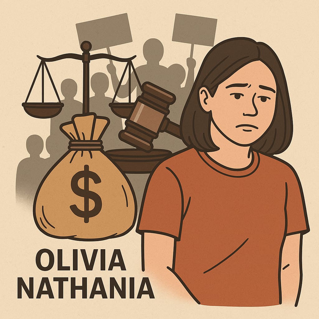 Korban CPNS bodong siap tempuh sita aset. Olivia Nathania bebas, tapi ganti rugi Rp 8,1 miliar belum dibayar (Ilustrasi: Minakonews/AI).