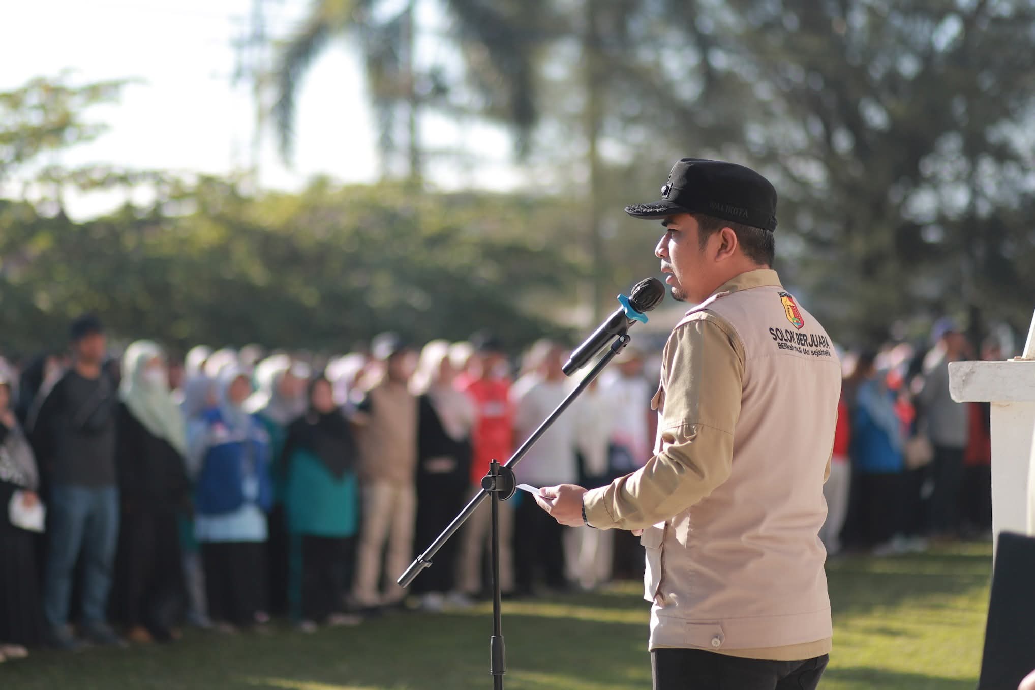 Wako Solok Ramadhani Kirana Putra pimpin Apel Gabungan Korpri Peduli Bencana yang digelar di halaman Balai Kota, Senin.(1/12/2025).(Foto : Eli).