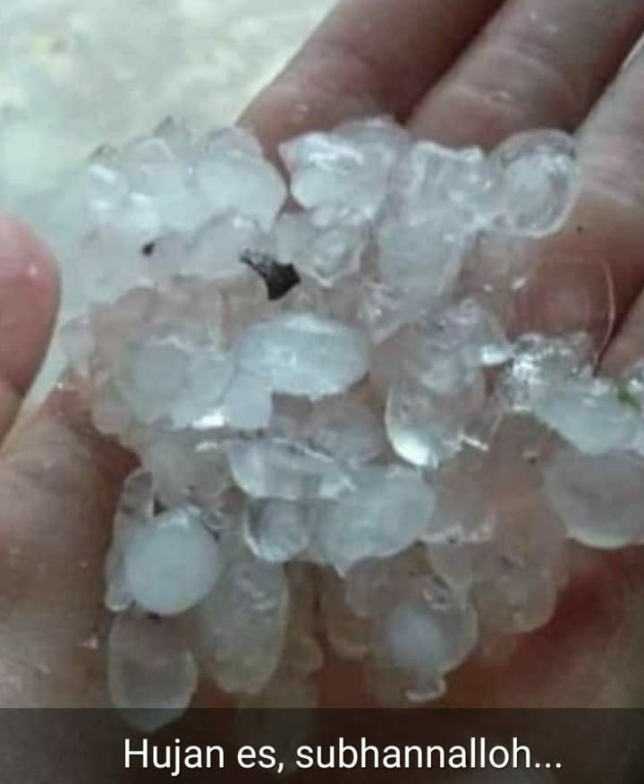 Hujan es berupa gumpalan.