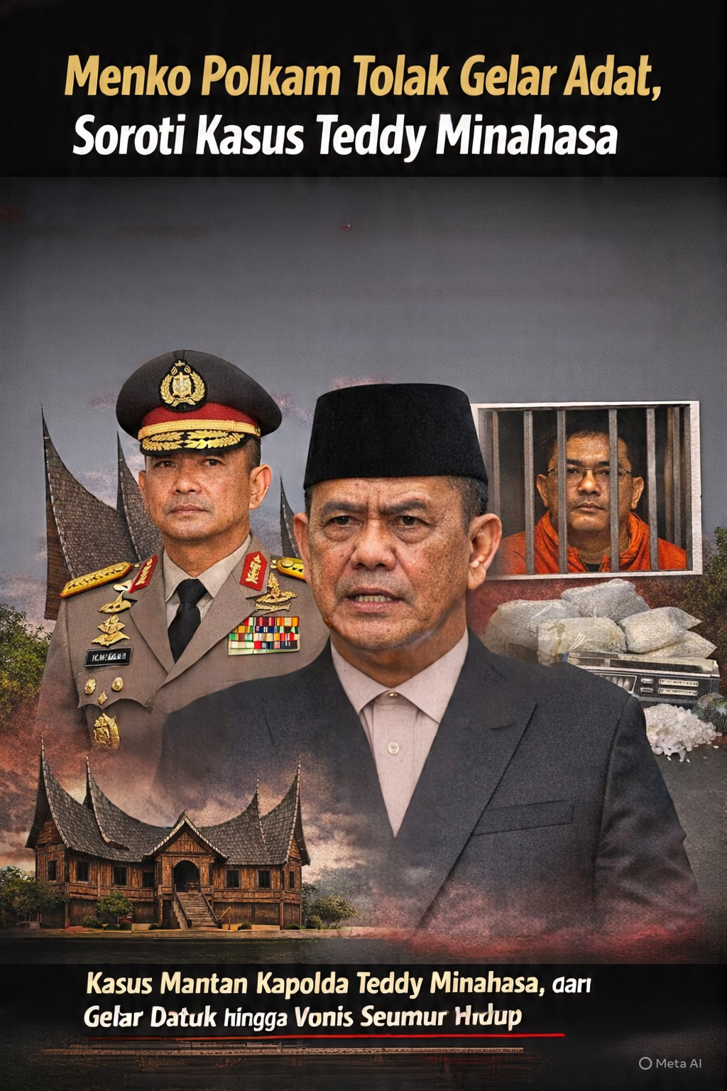 Menko Polkam Djamari Chaniago menolak gelar adat Minangkabau, menegaskan gelar adat harus dijaga kehormatannya. Kasus Teddy Minahasa dijadikan contoh buruk, dari gelar Datuk hingga vonis seumur hidup. (Ilustrasi: HT/AI).