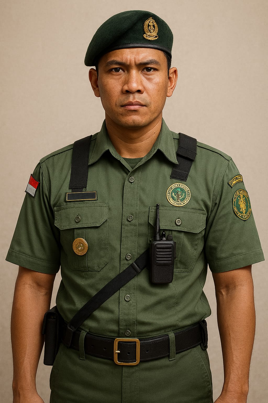 Polisi Hutan berseragam lengkap, siaga menjaga rimba dari pembalakan liar.(Potret Digital: WD/AI).