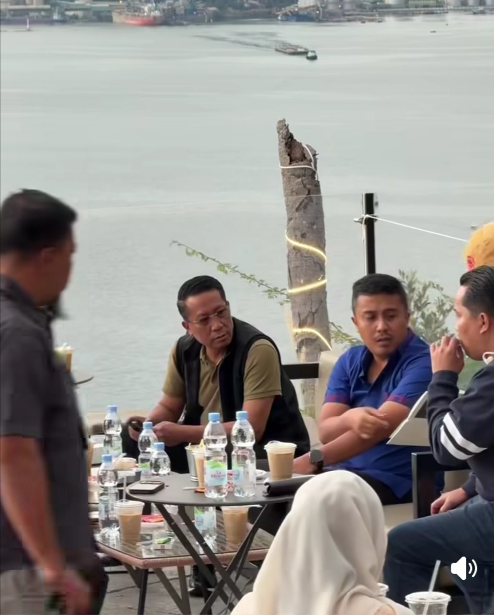 Menteri Hukum RI Supratman Andi Agtas menikmati suasana santai bersama rombongan di tepi perairan Ranah Minang.(Foto Dok. Wagub).