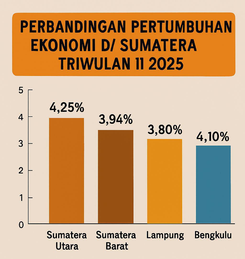 Jika dibandingkan dengan rata-rata nasional yang berada di kisaran 4,00–4,20 persen, pertumbuhan Sumbar memang sedikit lebih rendah. Namun, pencapaian ini tetap menunjukkan ketangguhan ekonomi daerah, terutama karena ditopang oleh sektor riil seperti UMKM, pertanian, dan pariwisata.