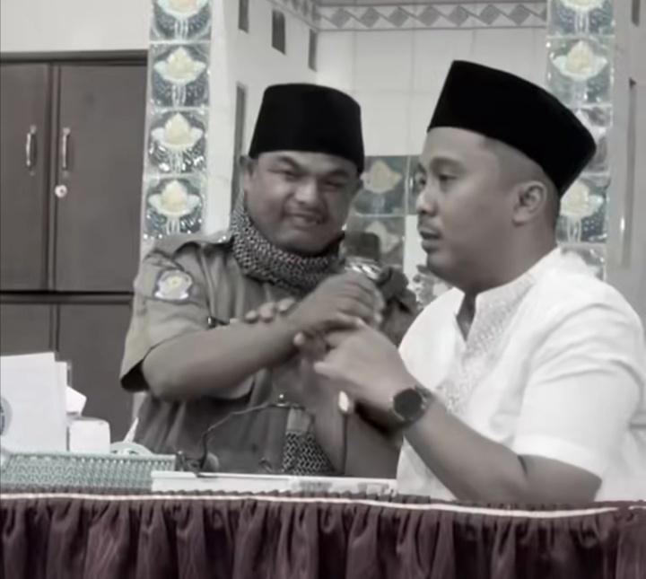 Seorang Camat dengan papan nama “Harun” menepuk pundak dan mengambil mikrofon Wakil Gubernur Sumbar Vasko Ruseimy dalam suasana acara resmi. Sang Camat menyebut dirinya dari “Tilatang Kubang,” namun hasil penelusuran menunjukkan nama Harun tidak tercatat sebagai camat resmi di Sumbar dan “Tilatang Kubang” tidak ada dalam administrasi provinsi (Foto Dok. Ist.).