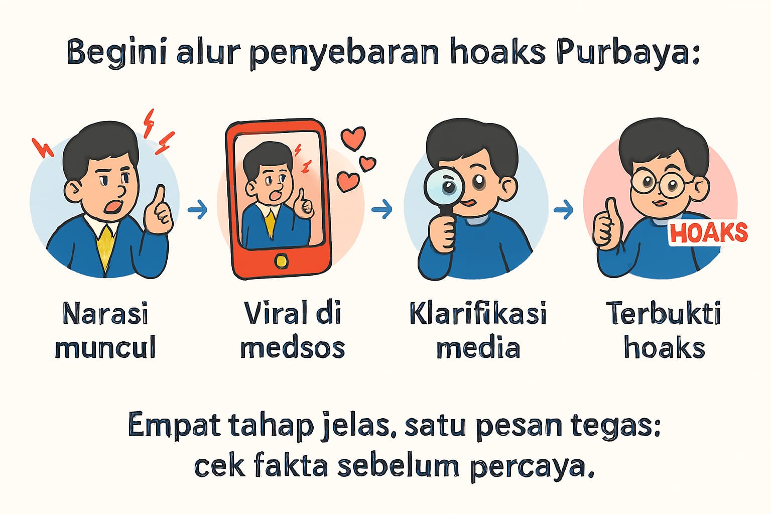 Begini alur hoaks Purbaya: muncul – viral – diklarifikasi – terbukti hoaks.