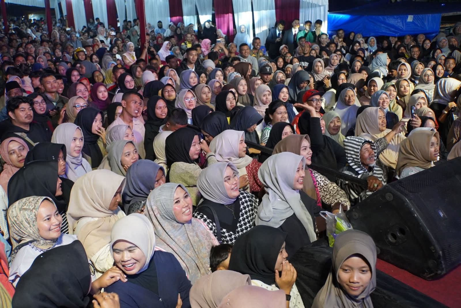 Warga tumpah ruah saat panggung hiburan rakyat di terminal mikrolet Pasar Padang Panjang.(Foto : Adi).