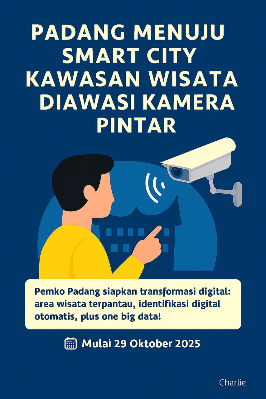 Melalui Forum Group Discussion (FGD) Smart City yang digelar di Balai Kota Padang, Rabu (29/10/2025), disampaikan bahwa seluruh destinasi wisata di Padang akan dilengkapi dengan sistem pengawasan berbasis teknologi. Masyarakat maupun pelaku wisata yang memasuki area wisata akan terdeteksi secara otomatis, guna menjaga ketertiban dan keamanan kawasan.