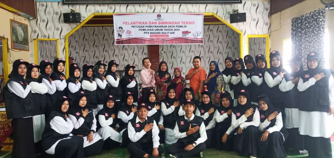 Solok (Sumbar), MINAKONEWS.COM – Sebanyak 28 petugas pemutakhiran data pemilih (PANTARLIH) yang terdiri dari 26 perempuan dan 2 laki-laki di Nagari Sulit Air Kecamatan X Koto Diatas dilantik di ruangan serbaguna Nagari Sulit Air Minggu (12/02).