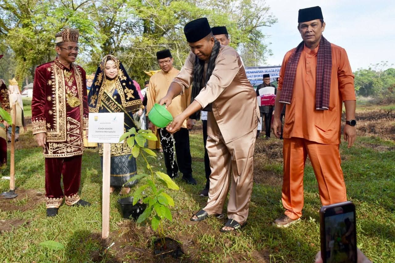 Wawako Pariaman Mulyadi tanam pohon Mahoni bersama BPOM RI, tandai gerakan nasional pelestarian lingkungan pascabencana di Sumbar. (Foto Dok. MCK).