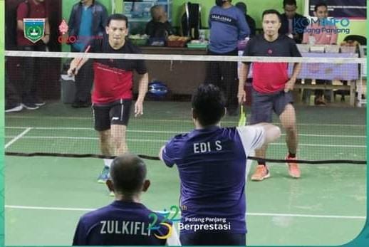 Padang Panjang (Sumbar), MINAKONEWS.COM – Pasangan Sonny Budaya Putra dan Suheri, terlalu tangguh bagi pasangan dari unit Korpri Dinas Pendidikan dan Kebudayaan (Disdik) dalam partai pembuka cabang olahraga badminton peringatan HUT Korpri ke-51.