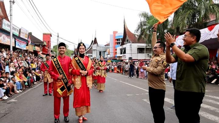 Pawai dibuka secara langsung Bupati Tanah Datar Eka Putra SE. MM didampingi Wakil Bupati Bupati Richi Aprian SH. MH ditandai dengan pengibaran bendera