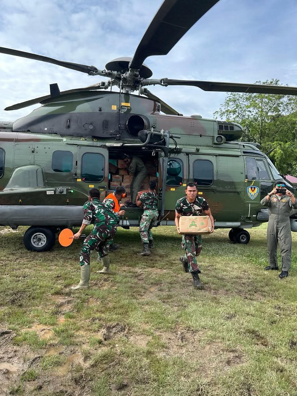 Helikopter TNI dikerahkan untuk distribusi bantuan ke wilayah terdampak bencana yang terisolasi.(Foto Dok. Setpres).