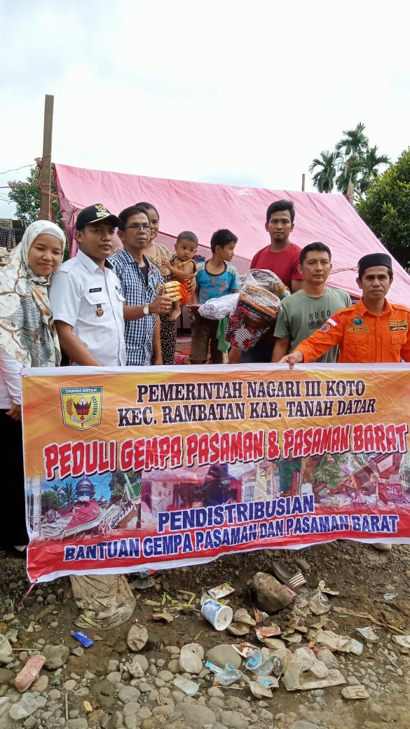 Willy menambahkan bahwa bantuan yang didistribusikan ini atas kepedulian masyakat kami III Koto, baik yang tinggal dikampuang halaman maupun yang ada diperantauan, sebab kita merasakan betapa beratnya beban dari masarakat akibat musibah gemba ini, kehilangan tempat tinggal, kehilangan harta benda, mudah mudahan bantuan yang kami sumbangkan ini dapatlah meringankan beban penderitaan dari masakat istilah urang awak kok indak panuah kateh, panuah kabawah, walaupun nilainya tidak seberapa tapi yakinlah akan sangat bermanfaat oleh masyarakat.