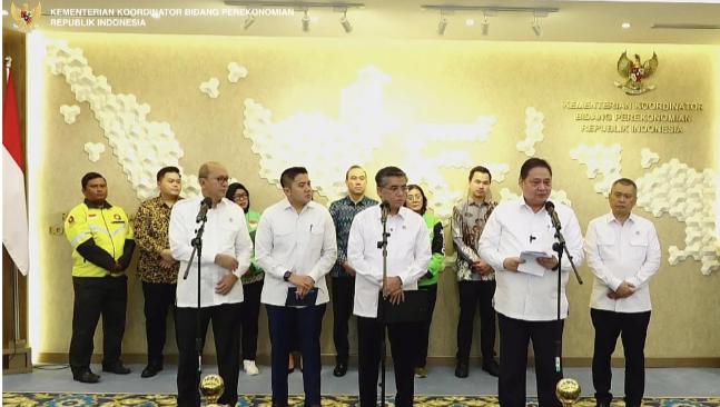Menko Perekonomian Airlangga Hartarto bersama jajaran pemerintah mengumumkan kebijakan pemberian THR dan BHR Idulfitri 2026 dalam konferensi pers di Jakarta, Selasa, 3/3/2026.(Foto Dok. setneg).