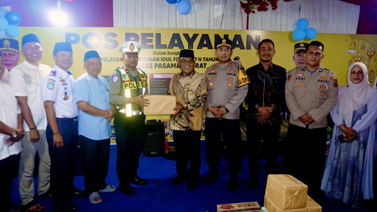 Bupati Pasaman Barat, H. Yulianto, meninjau Pos Pelayanan Perayaan Idulfitri yang berlokasi di depan Bank Nagari Simpang Empat, Kecamatan Pasaman. Dalam kunjungan tersebut, Bupati menyerahkan logistik kepada petugas jaga sebagai bentuk dukungan dan apresiasi atas kesiapsiagaan mereka.