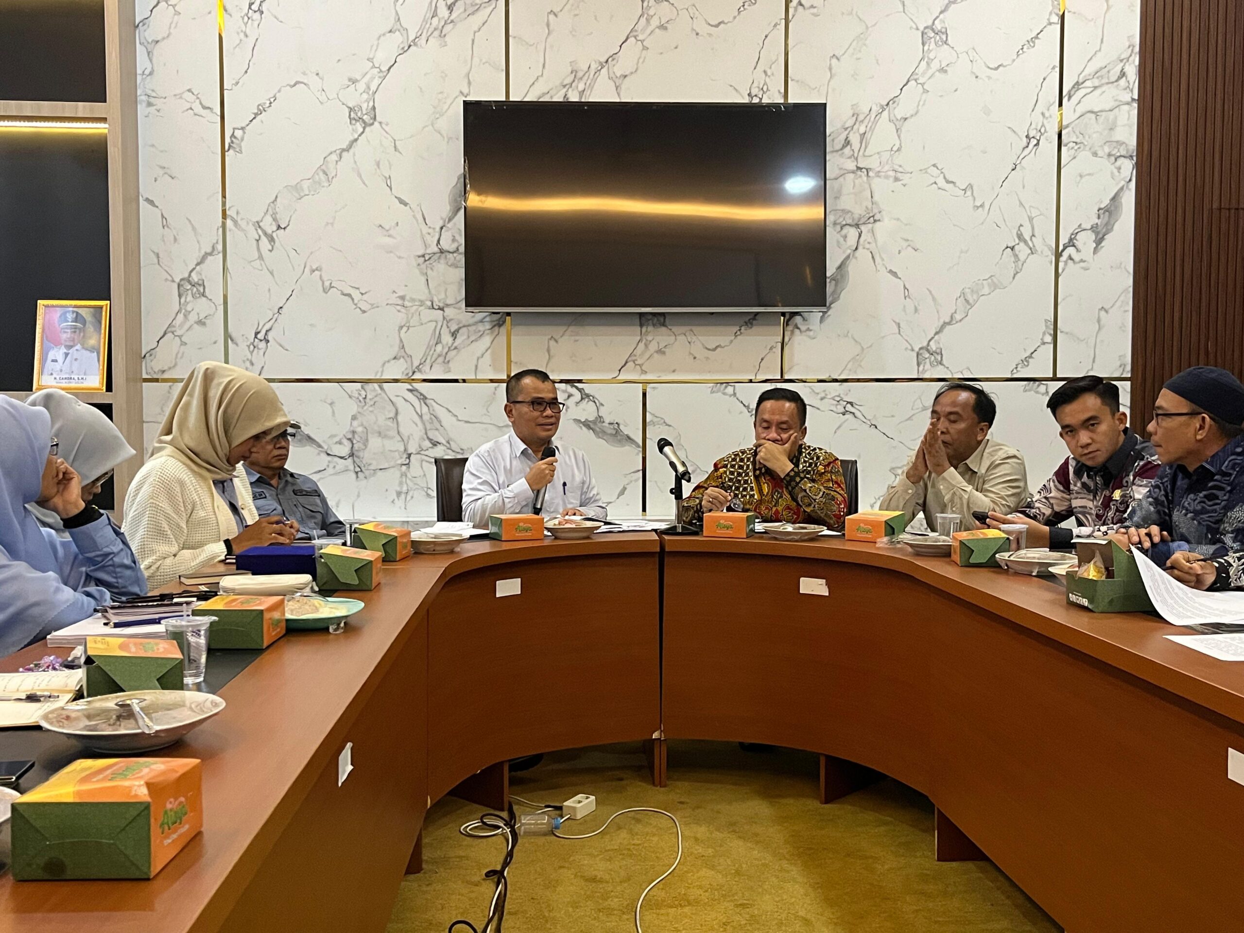 Ketua Komisi III Windia Alhadipuro disambu Bupati Solok yang diwakili Staf Ahli Bupati Deni Prihatni berserta Kepala OPD terkait di Ruang Rapat Setda Kab Solok.(Foto : Eli).