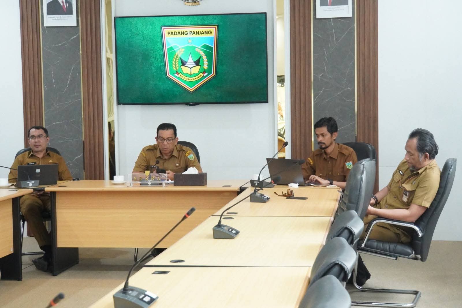 Padang Panjang (Sumbar), MINAKONEWS.COM – Pemerintah Kota (Pemko) Padang Panjang ikuti Rapat Kerja sekaligus Rapat Dengar Pendapat (RDP) dengan Komisi II DPR RI melalui Zoom Meeting, Senin (25/8/2025).