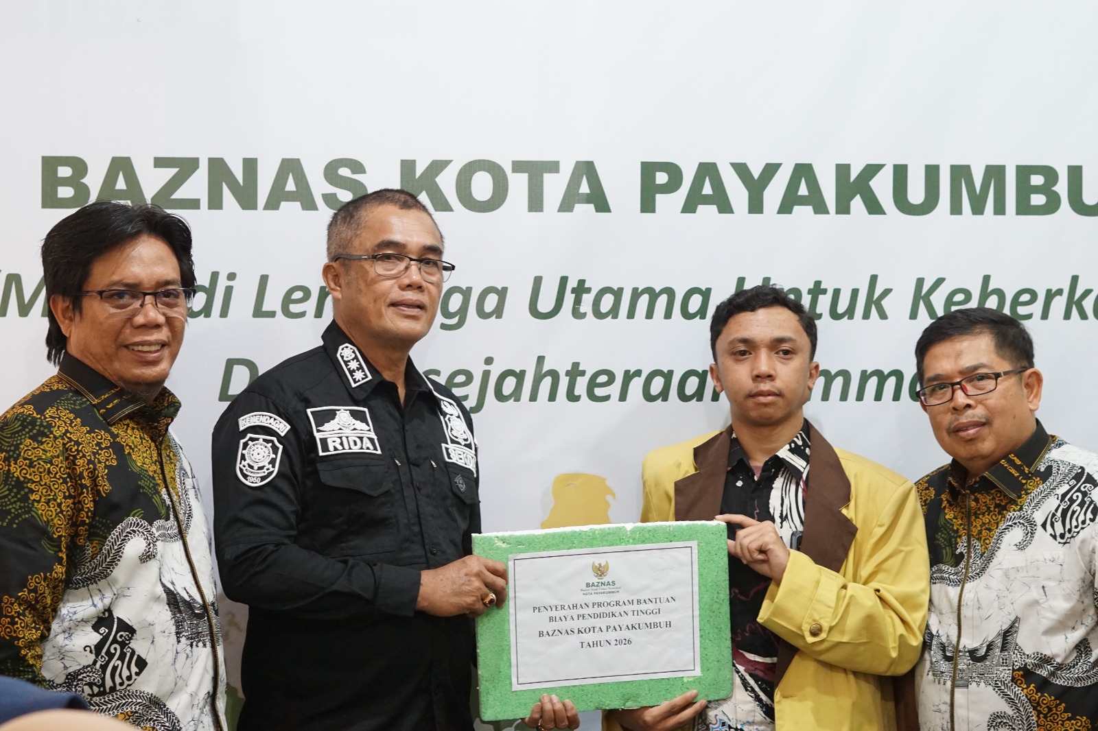 Wali Kota Payakumbuh diwakili Sekretaris Daerah (Sekda) Rida Ananda dalam kegiatan yang berlangsung hangat dan penuh semangat tersebut. Turut hadir Kepala Dinas Komunikasi dan Informatika Kurniawan Syah Putra, jajaran BAZNAS, serta sejumlah mahasiswa penerima bantuan yang hadir sebagai perwakilan.