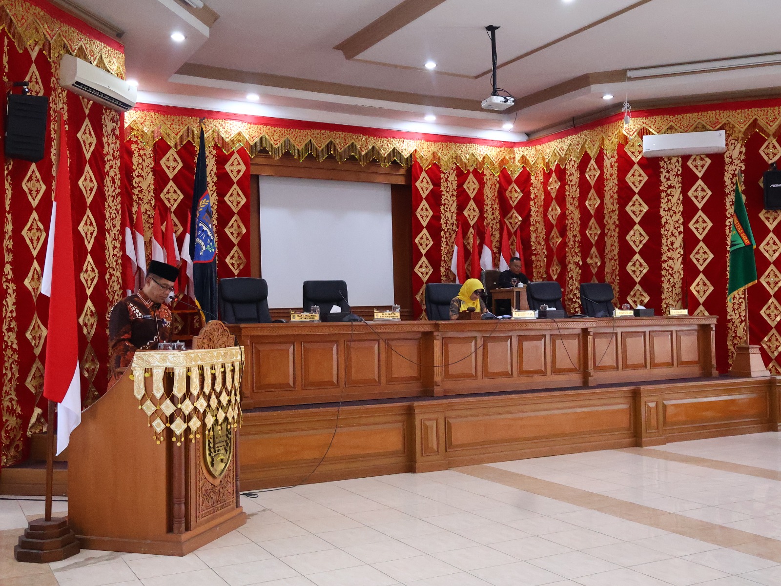 Walikota Payakumbuh diwakili Setdako Rida Ananda menyampaikan jawaban atas pandangan umum fraksi fraksi terhadap Nota pengantar rancangan APBD tahun anggaran 2026.(Foto : Herym).
