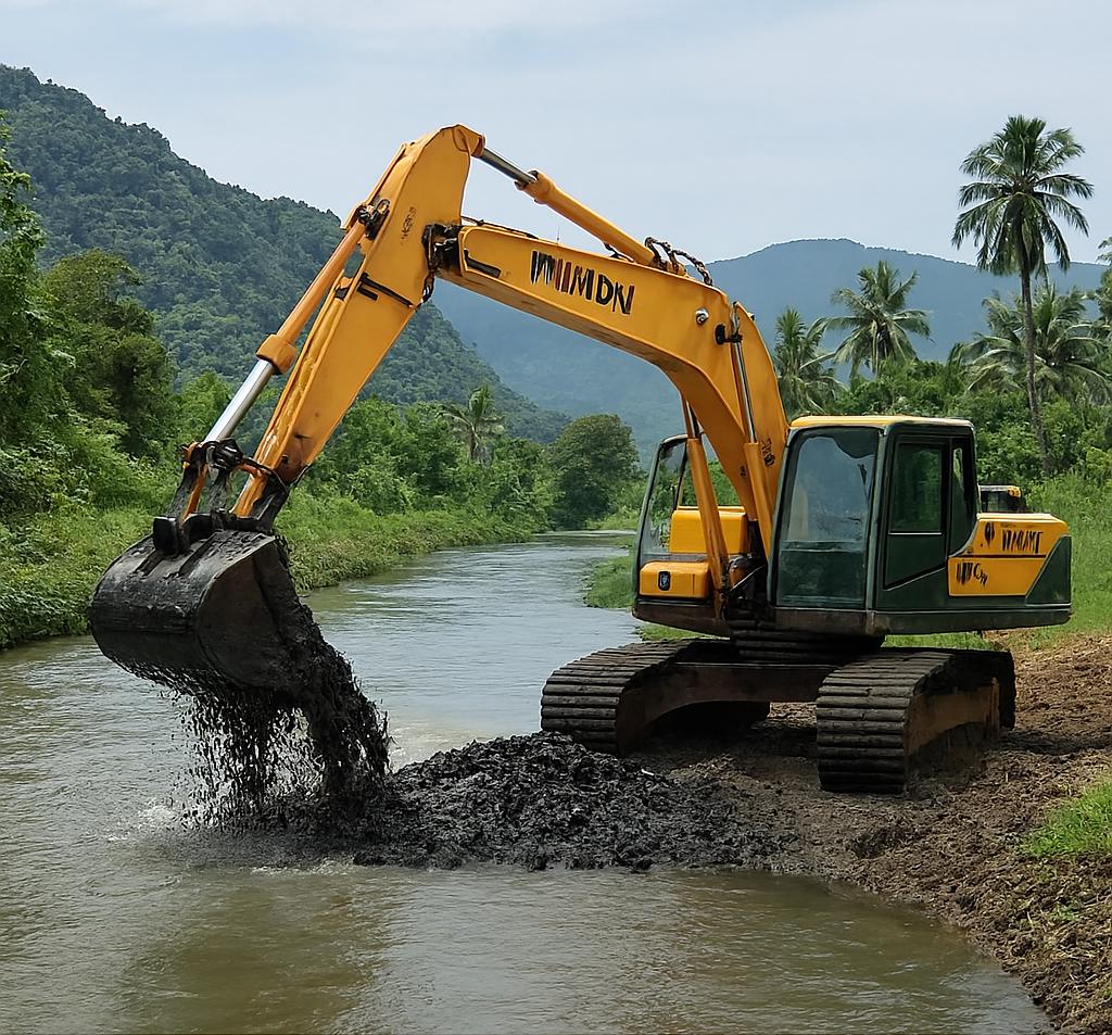 Pengerukan Sungai Muara Pisang di Maninjau dimulai untuk kurangi risiko banjir.(Infografis: AI).
