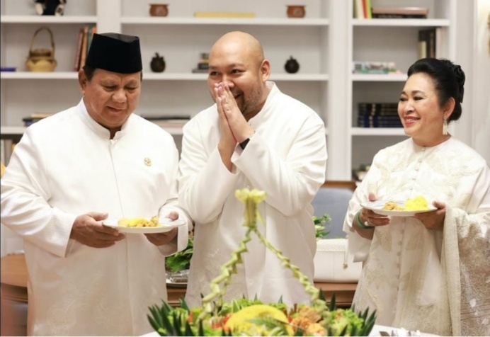 Dalam foto yang diunggah, Prabowo, Titiek, dan Didit tampak kompak mengenakan busana putih. Ada momen ketika Didit memotong tumpeng dan menyerahkannya kepada kedua orang tuanya, disertai senyum lebar yang menambah kehangatan suasana.