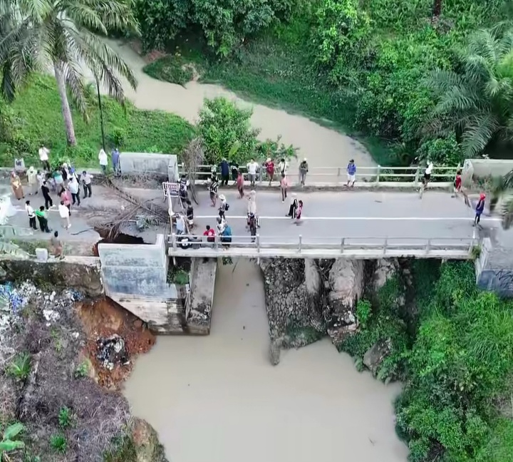 Menurutnya, struktur utama jembatan masih dalam kondisi baik. Namun, penyumbatan aliran air akibat sisa bangunan lama membuat arus sungai menumbuk tebing di pangkal jembatan. Hal ini menyebabkan tanah tergerus hingga badan jalan ikut terban.