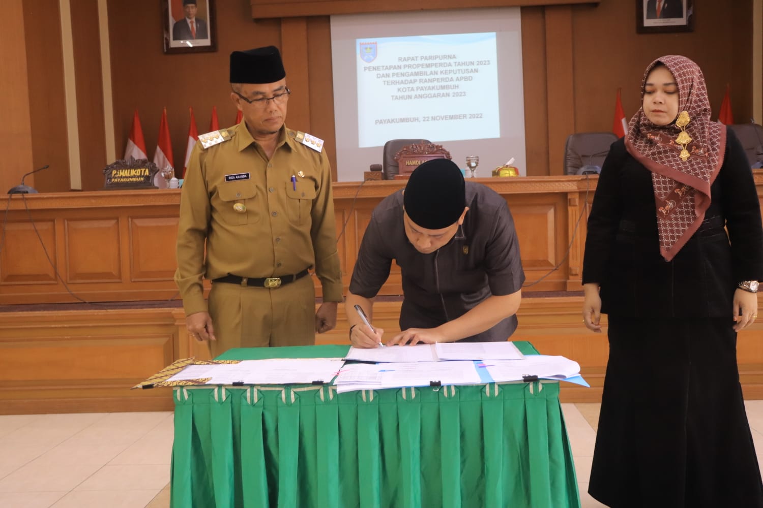 Payakumbuh (Sumbar), MINAKONEWS.COM – Disahkannya peraturan daerah rentang anggaran pendapatan belanja daerah (APBD) Kota Payakumbuh tahun 2023 menjadi Peraturan Daerah (Perda) oleh Penjabat Wali Kota Payakumbuh Rida Ananda bersama Pimpinan DPRD dalam rapat paripurna di Gedung DPRD Gonjong Nan Limo Koto Nan Ompek, Selasa (22/11) menjadi harapan baru bagi masyarakat Kota Payakumbuh, tetap optimis untuk terus membangun Kota Payakumbuh menjadi Kota yang lebih maju.