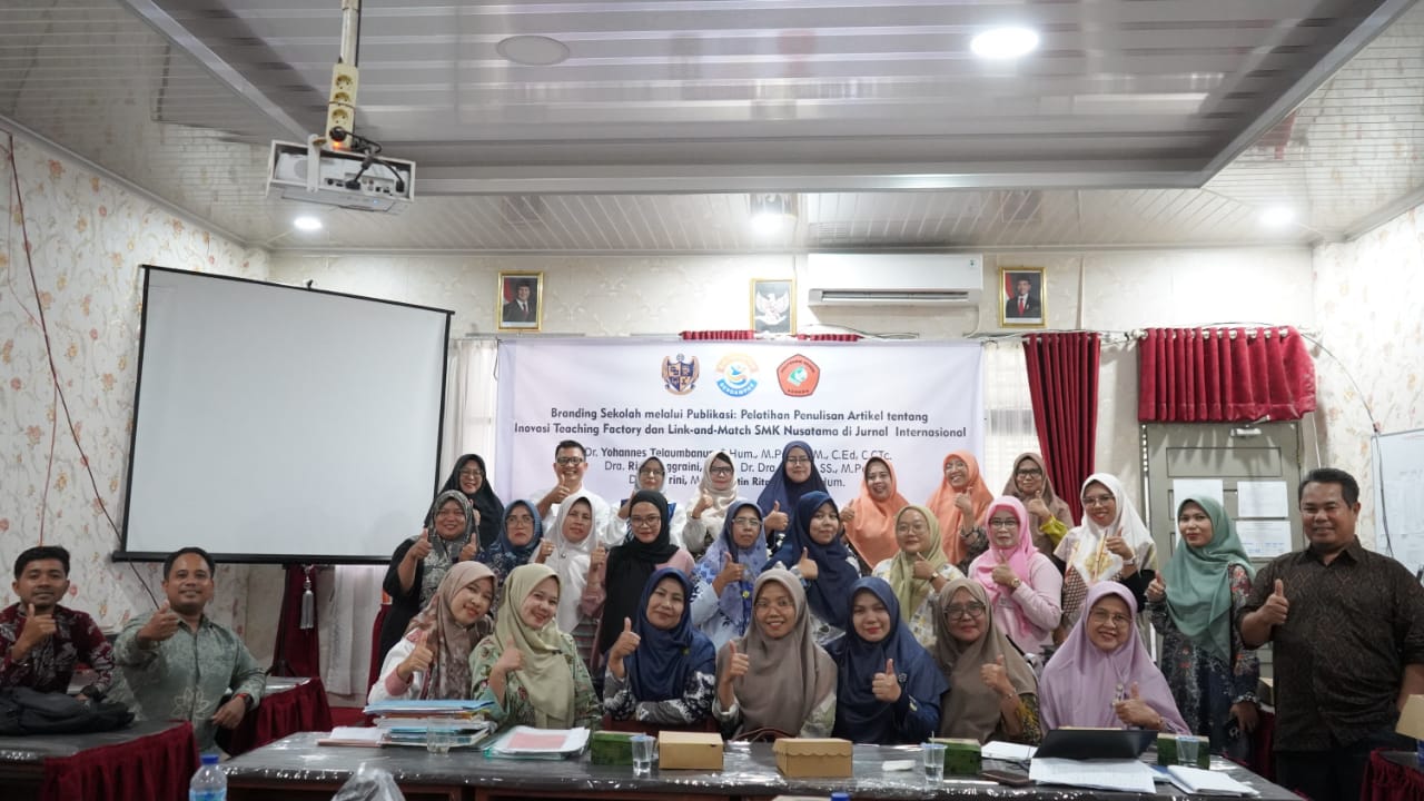 Kegiatan ini bertajuk “Branding Sekolah melalui Publikasi: Pelatihan Penulisan Artikel tentang Inovasi Teaching Factory dan Link-and-Match SMK Nusatama di Jurnal Internasional.”